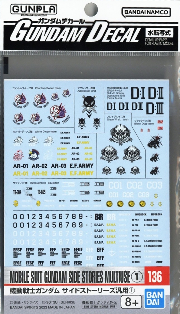 Bandai 136(2653311) Gundam Decal for 1/144 Mobile Suit Gundam - Side Stories Multiuse [1]
