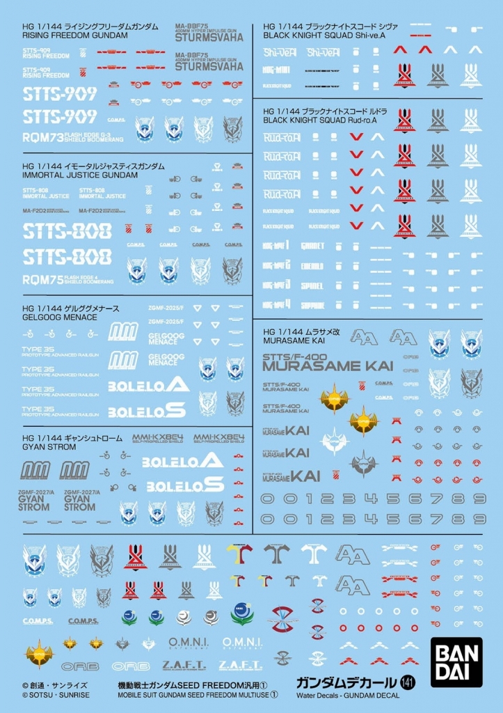 Bandai 141(2794138) Gundam Decal for HG 1/144 Mobile Suit Gundam - Seed Freedom Multiuse [1]