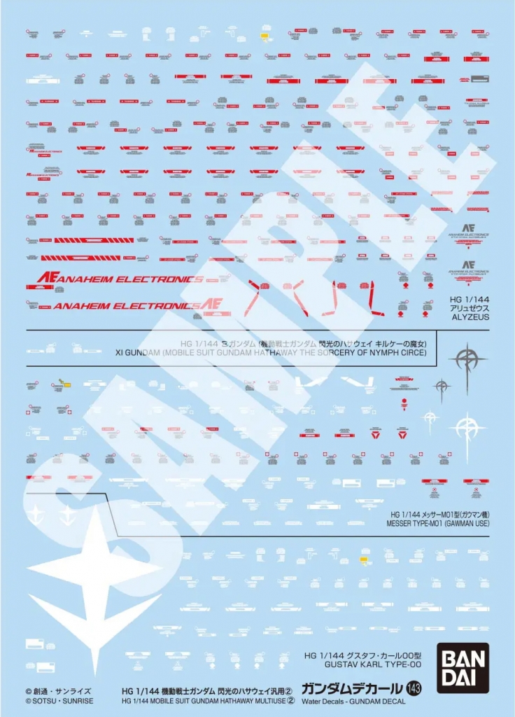 Bandai 143(2815165) Gundam Decal for HGUC 1/144 Mobile Suit Gundam - Hathaway's Flash Multiuse [2]