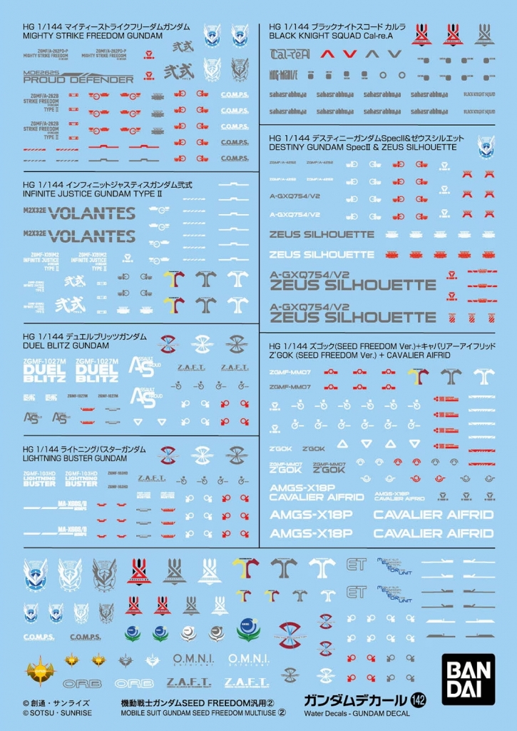 Bandai 141(2794138) Gundam Decal for HG 1/144 Mobile Suit Gundam - Seed Freedom Multiuse [1]